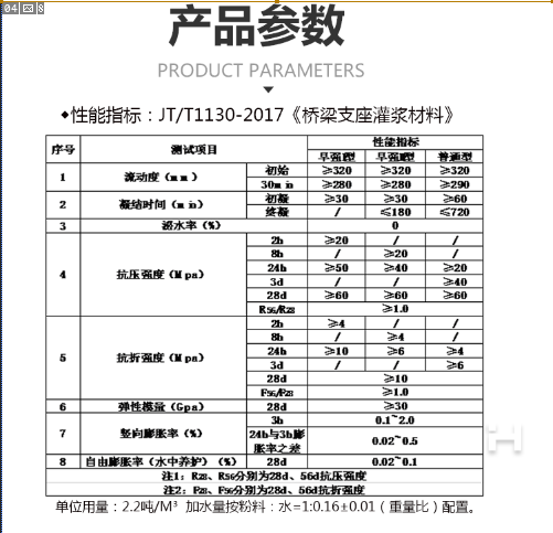 3、無收縮、粘結(jié)強(qiáng)度高: 具有微膨脹,與鋼筋有很好的握裹力。確保地腳螺栓和機(jī)座(鋼結(jié)構(gòu))基礎(chǔ)以及新老混凝土牢固結(jié)合。