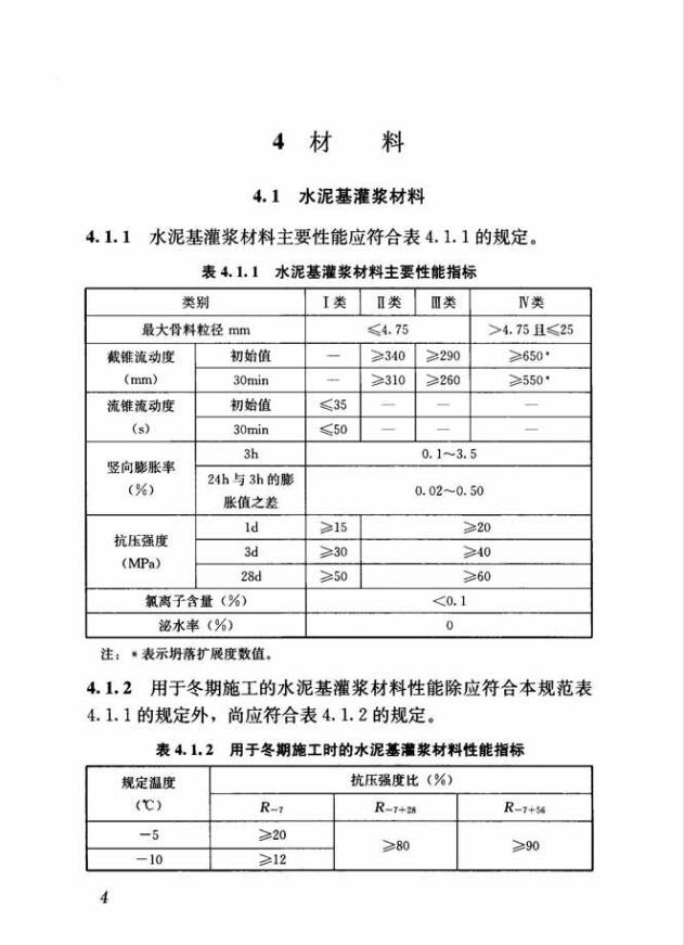 4.1.1本規(guī)范對材料按流動度分類,以便于設(shè)計選型。